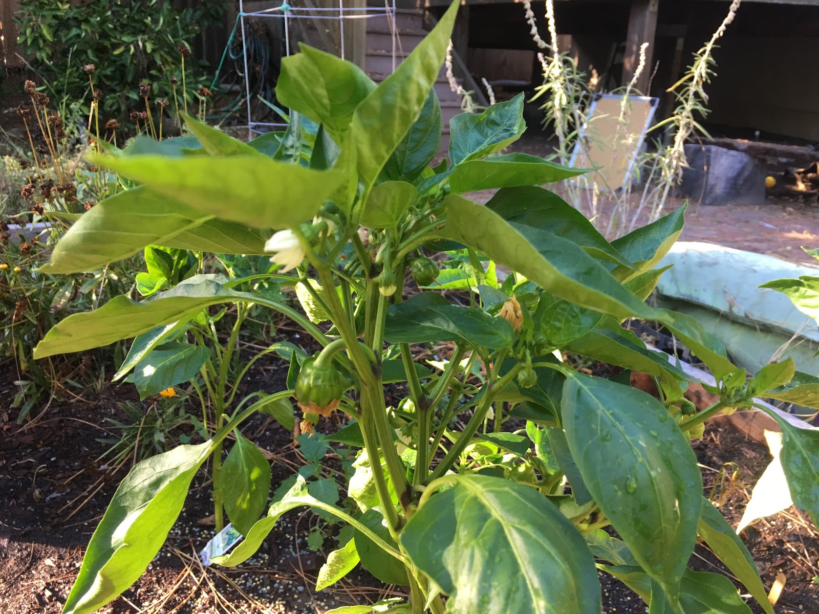 The garden is starting to come alive again. I'm spending more time taking care of it and using more water than i used to use on it and...wow....looks like plants really like more water. :) I'm still being careful - we are still not in awesome shape here in California, however we're looking at ways to be less wasteful and applying the water saved to the garden areas. I'm also hand watering and not just blasting everything with water. This allows me to water the plant bases, but not hitting plain dirt.